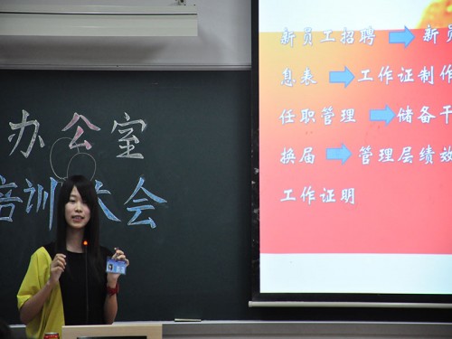 本网讯 5月24日晚,广外学生勤工助学中心(南,下称中心)行政部在E栋502策划主持了勤工第二次招新的新员工办公室培训大会。培训会持续大约一个半小时,整个过程洋溢着快乐的气氛,新员工在欢笑中学习到了日后的工作细则。