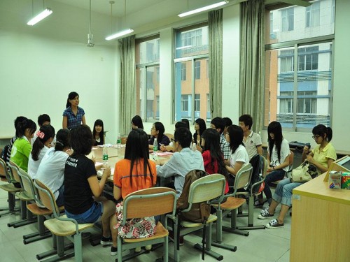 小组讨论环节是本次交流会的一大亮点。本环节把来自各校的勤工代表随机分成5各小组到不同的课室进行讨论。5各小组的议题分方向别是组织建设、人力资源、勤工助学发展、兼职、高校交流。在讨论的过程中各位参与者的表现积极,代表各自高校提出了自己的观点和见解,起到了集师广益的效果。时长1个小时的小组讨论在一片欢乐的气氛中度过,接下来每小组派出一名代表上台进行分享。在座各位都如饥似渴地听着这些讨论出来的“精华”。