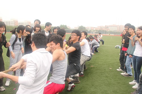 运动会的首个项目是“响起胜利号角”,游戏规则很简单,但需要队员们的默契和配合。参赛选手专注地投入比赛,其他队员则呐喊助威,气氛越来越高涨。每个项目的难度并不大,只是让大家在游戏中相互熟悉,在合作中建立起团队友谊。
