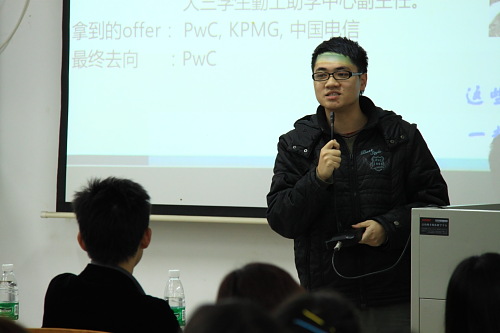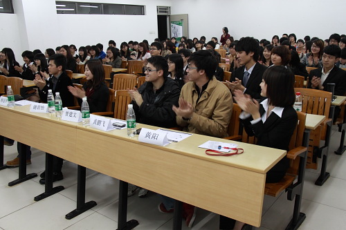 晚上7点,教室里座无虚席,嘉宾董事及各穿着正装的经理陆续到场,宣讲会在主持人的宣布下正式开始。中心常务董事吕洁成为到场的同学介绍中心概况,让与会人员对中心有了更深入的了解。