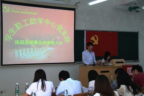 本网讯9月18日,学生勤工助学中心(北,下简称“中心”)党支部在六教B201隆重举行了换届选举暨总结表彰大会。本次出席大会的主要有中心指导老师曾健文、陈哲、易先菊,南北校常务董事及南北校预备党员等。大会场面严肃而庄重。