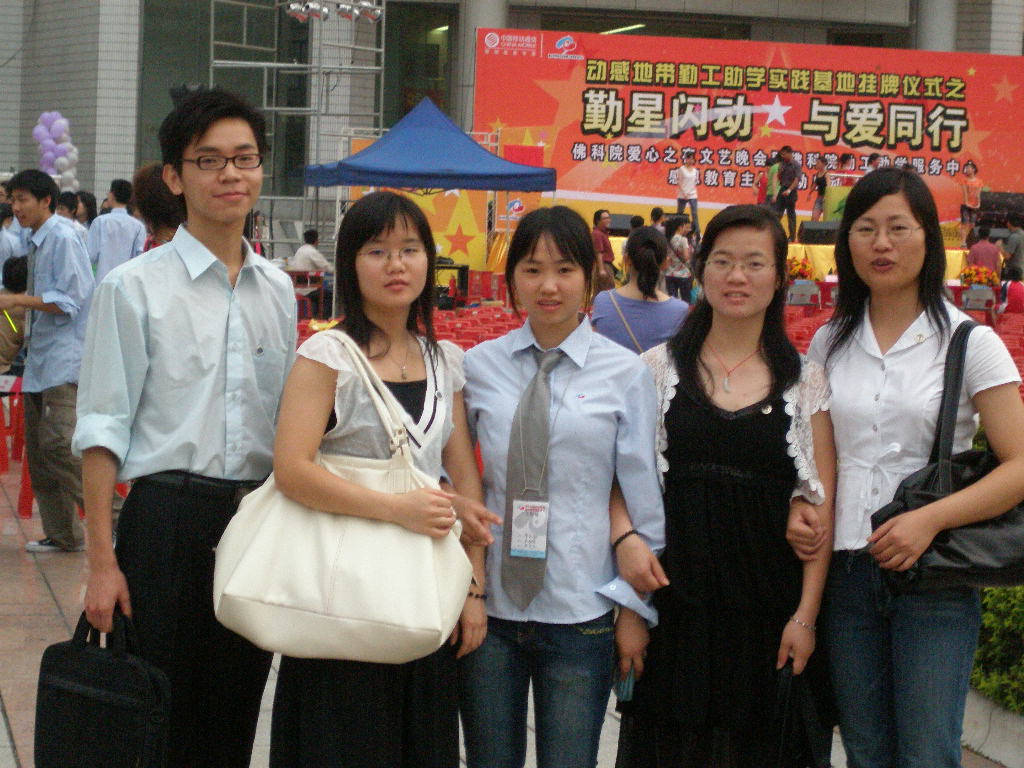 本网讯2007年5月13日,我中心应佛山科学技术学院勤工助学服务中心的邀请,出席了以“勤星闪动 与爱同行”为主题的爱心之夜文艺晚会暨动感地带勤工助学实践基地挂牌仪式、佛山科学技术学院勤工助学服务中心感恩教育主题活动启动仪式。代主任区柱标、主任助理谭丽荣、行政部经理何欣瑜、公共关系部经理陈潮妆代表中心出席了本次活动,受到佛科院同学的热情接待。这是继3月17日佛科院来我校参观交流结为兄弟联盟之后的第二次友好交流。