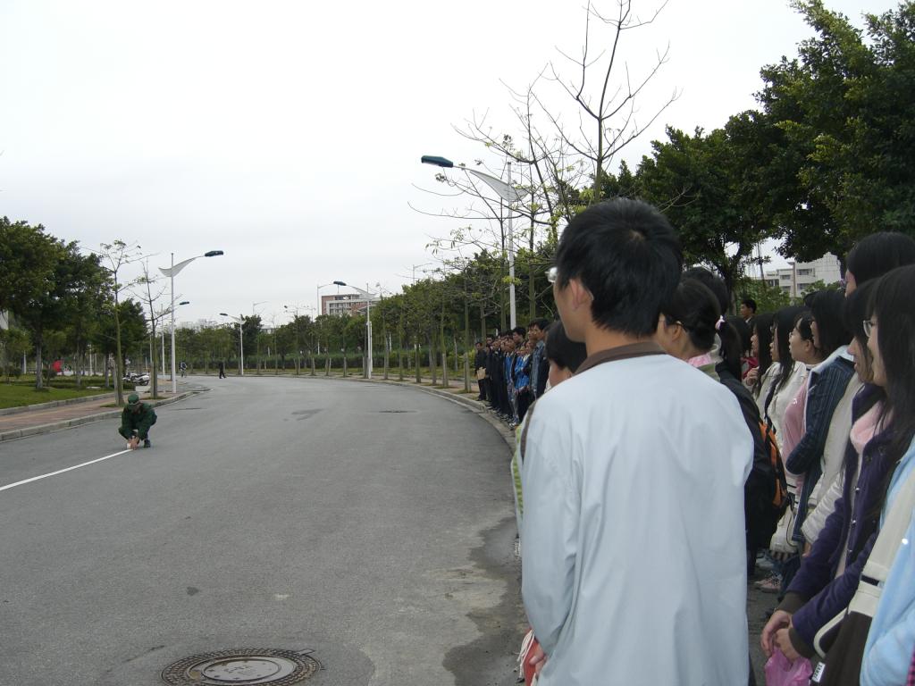 经历了一场紧急疏散演练后,参与演练的队伍来到明德西路(教学楼D座西侧)观看校卫队抛水带示范表演、学习灭火器使用操作。抛水带、拧开消防栓、高空喷水,就在短短的十几秒内,校卫队员轻松完成这项喷水工作,全场观众叹为观止。
