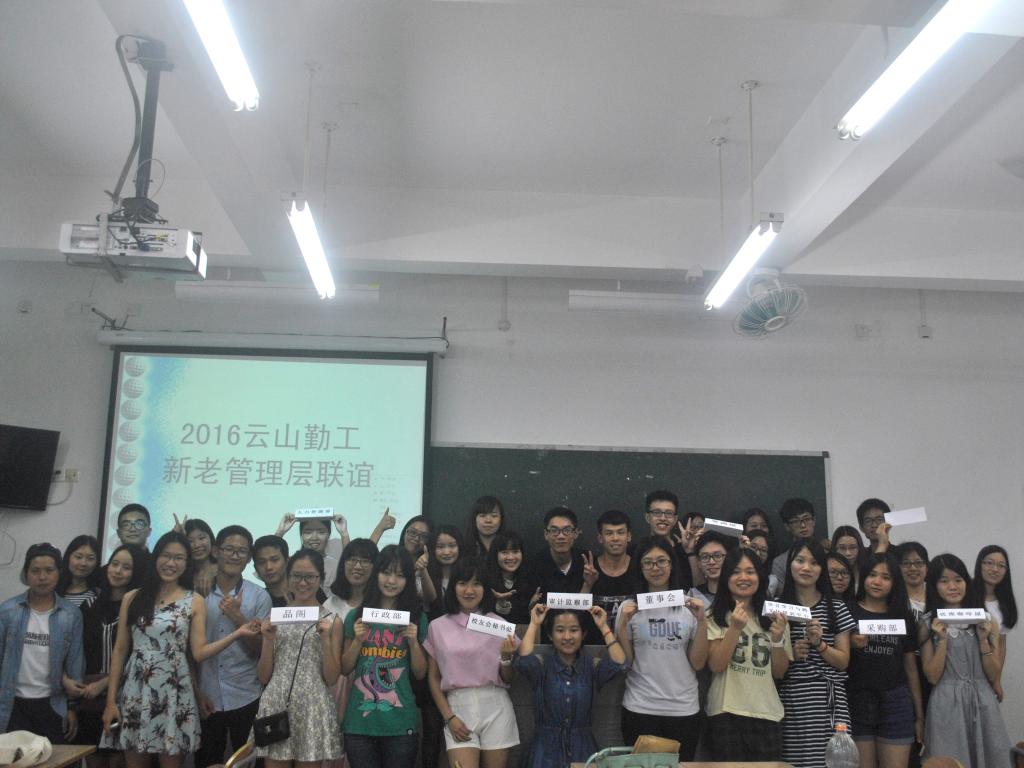 本网讯 2016年5月8日19:00-22:00,由北校区云山勤工校友会秘书部组织的新老管理层交流会暨老管理层欢送会(以下简称“交流会”)在六教B208举行,参加本次交流会的有来自云山勤工董事会以及各职能部门和实体的新老管理层。在勤工换届之际举办此次交流会意在送别老管理层,迎接新管理层上任,增进各职能部门与实体间管理层的感情和了解。
