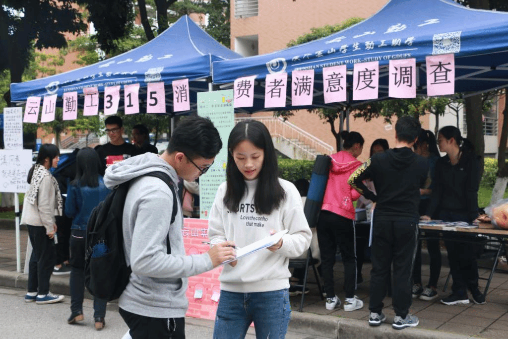 本网讯 3月15日,广外云山学生勤工助学(南,以下简称“云山勤工”)审计监察部(以下简称“审监部”)在校道举办了3·15消费者满意度调查的摊宣活动。本次活动旨在收集消费者的意见,了解消费者的心声,促进云山勤工实体提高自身服务水平。