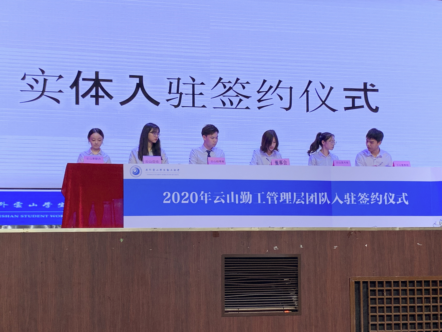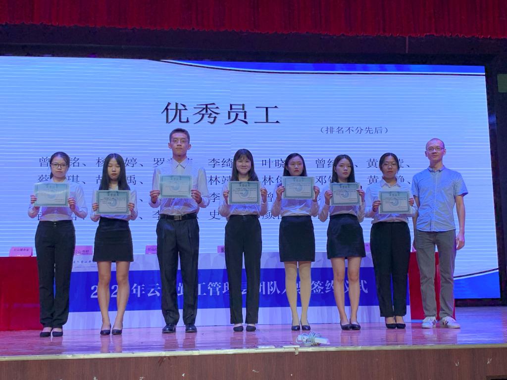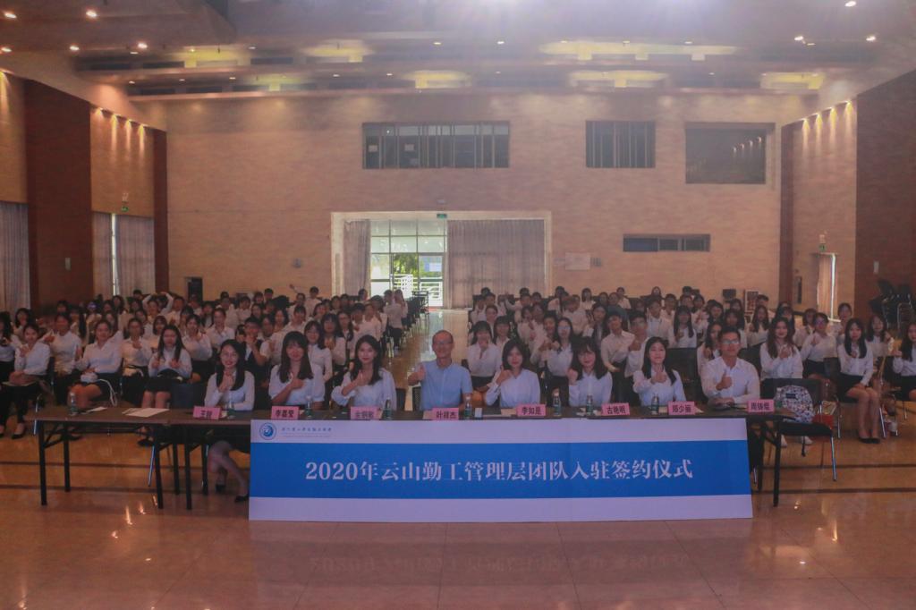表彰仪式结束后,在叶祥杰科长和优秀勤工人们的见证下,各实体代表签订入驻协议,新任董事会和新任职能部门经理接受聘书,代表着云山勤工新任管理层正式接任,他们正式成为云山勤工大家庭的一份子。