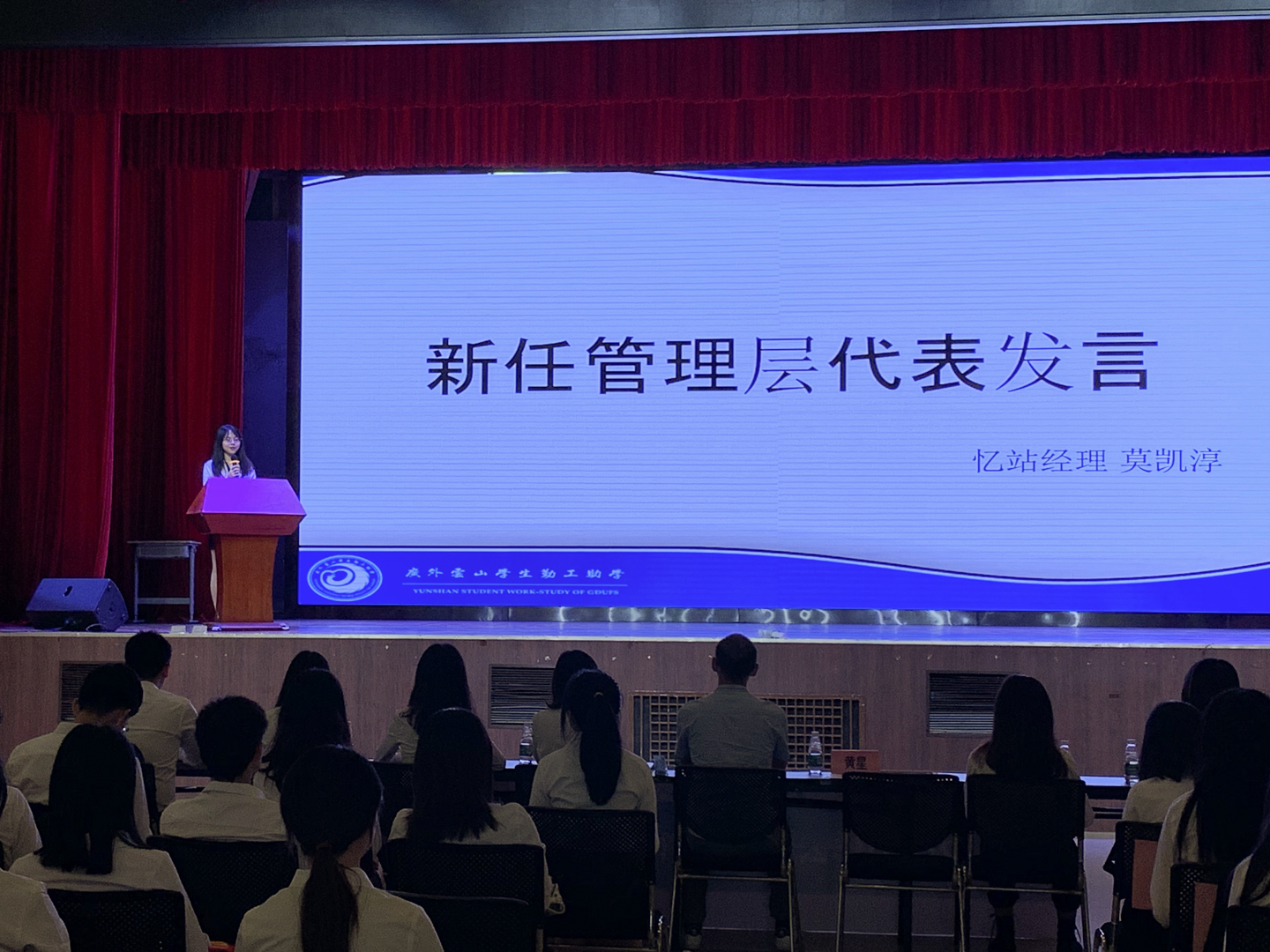 本网讯2020年9月24日下午,2020年云山勤工总结表彰暨新任管理层入驻签约仪式在广外南校区学生活动中心二楼举行。出席本次大会的有学生处资助中心科长叶祥杰以及勤工的新老管理层等勤工人们。