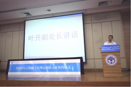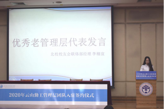 本网讯 10月8日,云山学生勤工助学(以下简称“云山勤工”)总结表彰暨新任管理层入驻签约仪式在北校区图书馆报告厅举行。学生处副处长叶开,学生资助管理中心科长叶祥杰,云山勤工指导老师吴宛姗、黄建霞、李伟文、谢蓉,云山勤工党支部、董事会成员以及各单位新老管理层人员等出席了本次会议。
