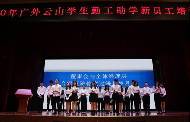 本网讯 11月7日上午,2020年广外云山学生勤工助学(以下简称“云山勤工”)新员工培训大会在南校区学生活动中心举行。学生处资助管理中心科长叶祥杰、云山勤工指导老师许嘉航、云山勤工董事会、各单位经理及新一届员工出席本次大会。