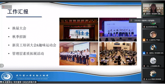 联络部(南)主管申佳妮汇报了关于校友企业走访等工作成果,联络部积极策划校友活动,为年轻员工传授经验,提高员工素质与能力。并举办勤工联谊活动,加强勤工内部团结合作,构建和谐互助的工作氛围。