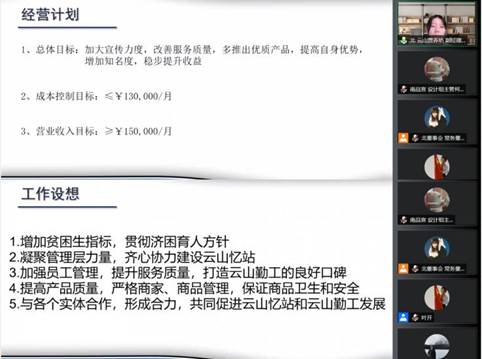 云山忆站(南)经理吴炜斌在未来工作设想方面提出积极响应并贯彻济困、助学、育人的方针,提高贫苦生录用率,发挥实体勤工助学的助学、筑梦、育人的作用;此外,云山忆站将与其他实体进行合作,不断创新,为广外学子提供更好的服务,共同促进云山勤工更好发展。