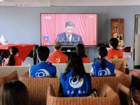 本网讯 2022年10月16日上午十时,广东外语外贸大学云山学生勤工助学(下简称“云山勤工”)指导老师、全体经理及部分员工分别于南北校分会场共同观看中国共产党第二十次全国代表大会开幕盛况。党的二十大是在全党全国各族人民迈上全面建设社会主义现代化国家新征程、向第二个百年奋斗目标进军的关键时刻召开的一次十分重要的大会。大会上,习近平总书记同全党全国各族人民共同回首党的艰苦奋斗历程,规划中国特色社会主义现代化建设的广袤未来。