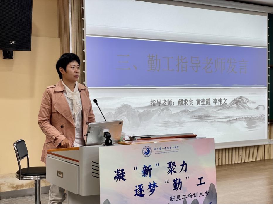 黄建霞老师发言指出,新员工培训大会的关键目的是为了让新员工了解勤工,落实做好每件事,提高工作效率。她希望新员工们能够熟悉自我岗位工作,了解条文规定。