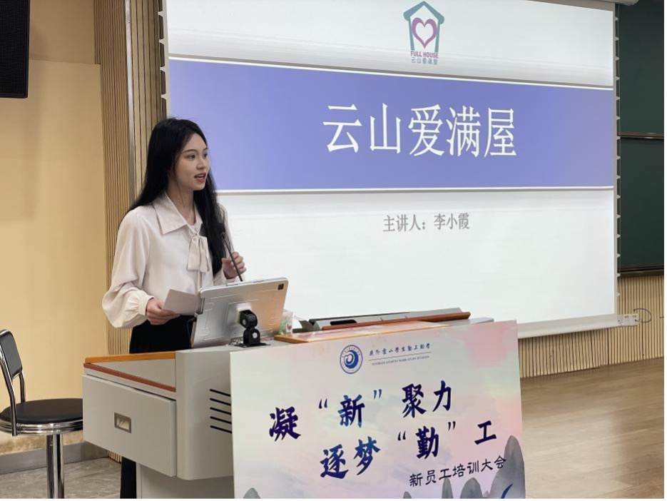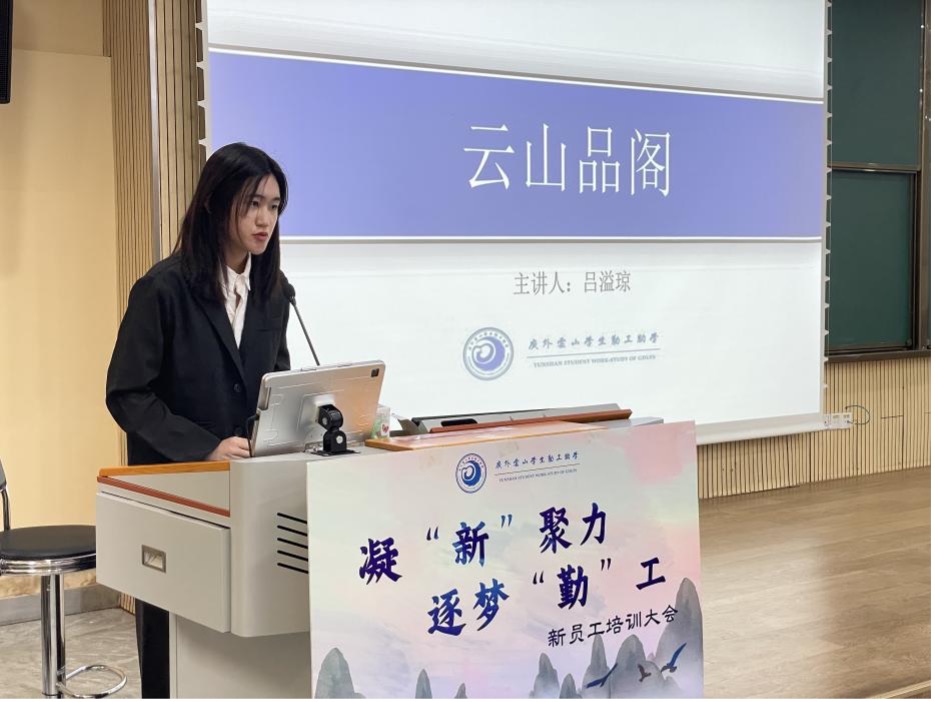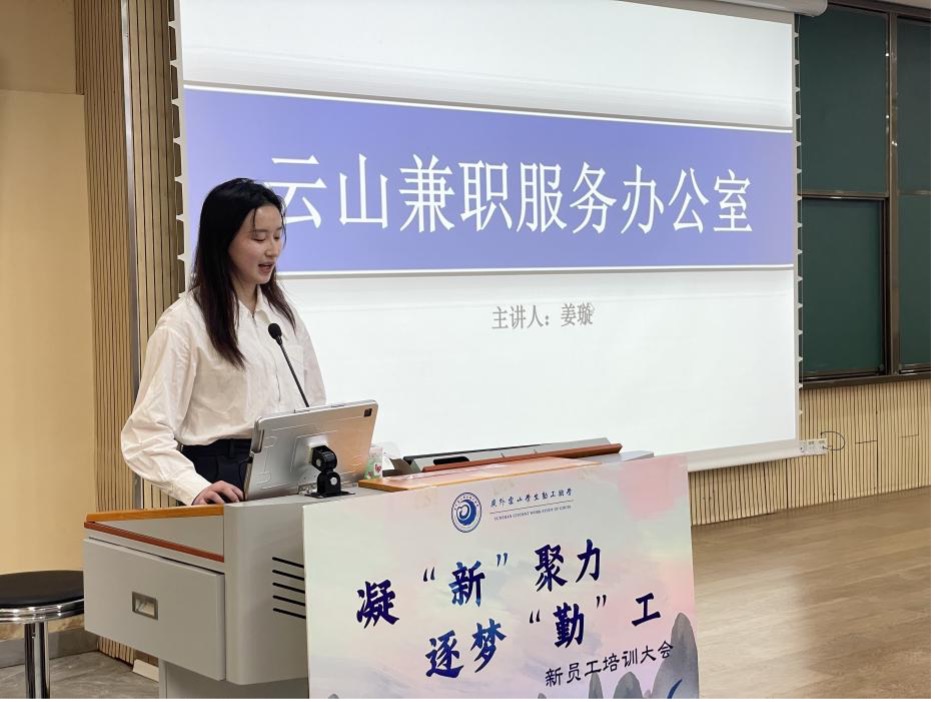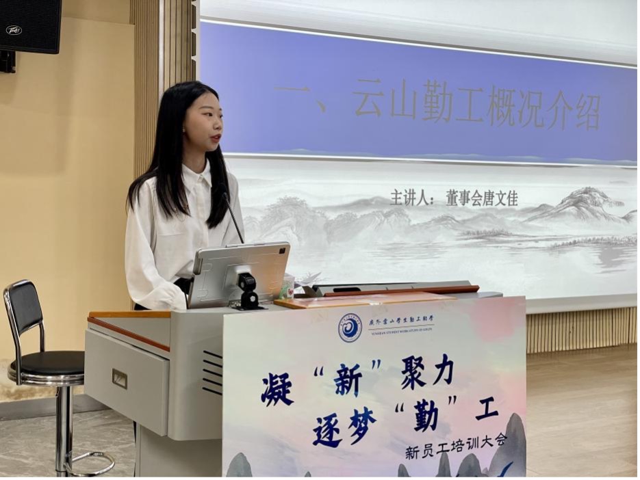会议伊始,董事会唐文佳对云山勤工进行了简单介绍,并回顾了勤工在过去二十年中取得的成就,她衷心地希望新员工们能秉持云山勤工“穷且益坚,不坠青云之志”的宗旨,继续在勤工发挥个人力量。