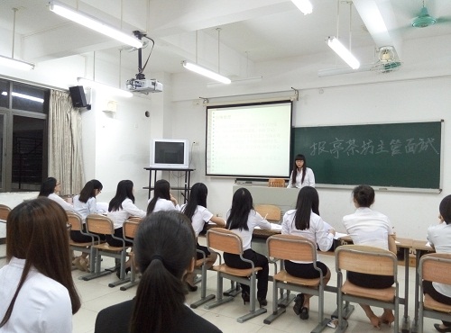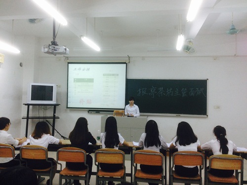 本网讯5月7日晚七点半,一批身着正装的女生忐忑不安而又稍稍期待地站在了六教B 202前。她们都是云山书报亭(北,以下简称报亭)和云山凉茶坊(北,以下简称茶坊)合并后各部门主管的候选人,经过今天晚上的二面,原管理层将会在5月11日前公布进入实习期的主管名单。