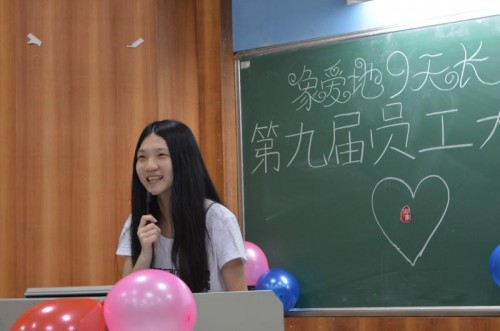 本网讯五月九日晚七点,云山印象(北,以下简称印象)第九届员工大会在七教107如期举行。当晚,云山勤工助学中心董事张秀梅,云山优座咖啡屋代表蔡冰锋和钟慧慧应邀出席了这次员工大会。本次员工大会的主题为“象爱地9天长 ”,喻示云山印象迎来了第九次的更新换代,而印象精神一代代薪火相传,新老“象儿”(印象员工的昵称)永远相亲相爱如一家人。