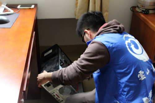 对于数码港成员们的到来,老师们开始时眼中流露出一丝怀疑,但成员们运用自己所学知识迅速判断出机器故障,随即运用所学技术进行修理,很快就把故障一一排除了,老师们对他们娴熟的技术表示赞赏,并向他们询问了具体出现的问题,成员们不仅耐心、仔细地解答老师的疑问,还向老师传授了一些电脑知识。