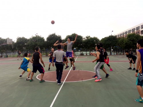 13点50分,南北校全体员工在篮球场举行了一场南北校篮球友谊赛。秉着“友谊第一,比赛第二”的宗旨,球员在和谐友好的气氛中开始了比赛。