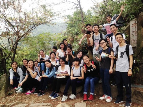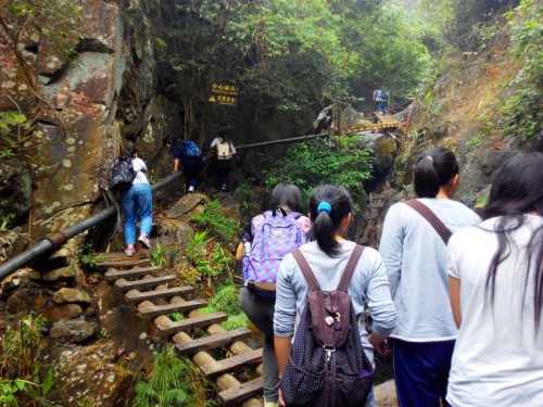 早上8点30分,各位亭仔们在校门口合影后,便坐上旅行社的大巴来到清远。站在第一站的百步梯下,高耸的台阶便已让人望而生畏,还好一路上的嬉戏打闹,也终于让亭仔们在欢声笑语中登上了梯顶。而站在亲自攀登上的顶端,才能亲眼看到那一步步台阶最后堆砌成的风景,好一幅举头红日白云低,五湖四海皆一望。