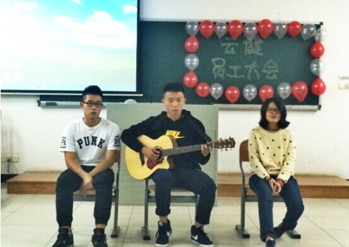 为了促进健身室员工的交流与沟通,为了更好地展现员工们的风采,每个新员工都必须准备节目进行展示。歌舞唱跳,相声小品,各式表演充分地展现了健身室员工们的多才多艺。