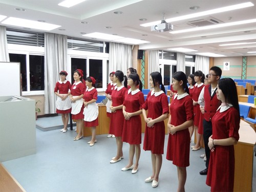 每个学期初举行一次服务员开学培训是优座的传统,旨在帮助休整了一个假期的服务员们温故知新,尽快进入上班状态。本次培训主要包括营业反馈、新品和餐具搭配、电影之夜和游戏环节四个部分。别开生面的是,本次的服务员培训,不同于以往由一或两个培训师主讲的方式,而是由整个培训师团轮番讲说。此外,为了让服务员们全神贯注地投入培训,培训师要求所有参加培训的服务员上交手机,暂代为保管。在培训开始的前20分钟,服务员们还被要求以标准站姿站立,这不仅是对礼仪的温习,还能使其更专注于培训。