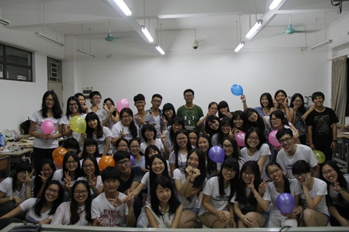 本网讯10月10日晚7点30分,云山印象(北,以下简称“印象”)三周年庆祝晚会在六教B209举行。董事会常务董事林晓彬,常务副董事张秀梅和洪洁以及兄弟实体云山优座咖啡屋(北,以下简称“优座”)的经理阮彬和副经理洪小莹等嘉宾都莅临了晚会现场。各位嘉宾与一众印象新老员工在欢聚一堂,共同献上了对印象的祝福,优座的两位经理还精心为印象准备了“生日礼物”。