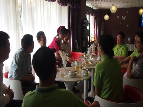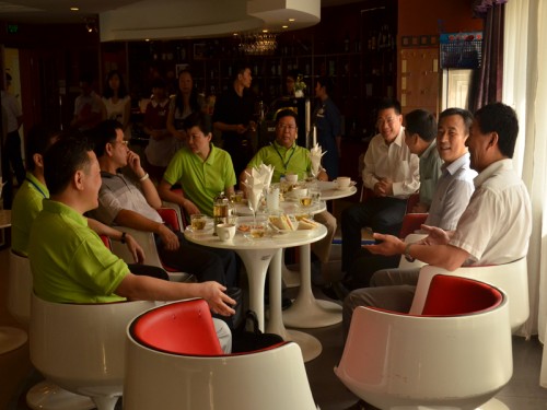 接待的前一天晚上,优座管理层在会议上讨论了本次接待的相关事宜,并重新布置了优座V区(贵宾区)的桌位,以便更好地满足接待的需要。当天早上,优座经理阮彬和当班人员早早就来到优座准备接待的相关工作:沏茶、煮咖啡等。很快,一切准备就绪。