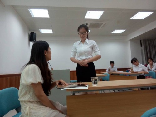 “多实践,多操练”是本次培训的一个亮点。不管是基本礼仪还是营业流程培训环节,每一个新人都有参与实践的机会。在情景模拟环节,由培训师们扮演顾客,新人们扮演服务员,模拟服务的情景及服务过程中可能遇到的各种状况。培训师们一边扮演顾客“刁难”新人,一边观察记录,在模拟结束后给予反馈。这种讲教与操练相结合的方式,使得新人们能够迅速有效地消化培训内容,达到事半功倍的效果。
