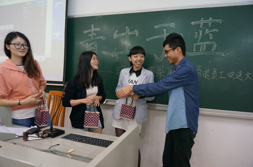 本网讯 5月9日晚7时,云山书报亭(北,下简称报亭)于6教204举行实习员工成果展示及离退员工欢送会,本次会议以“青出于蓝”为主题,意在期盼新员工们能以超越之势带领报亭走向更加美好的明天。