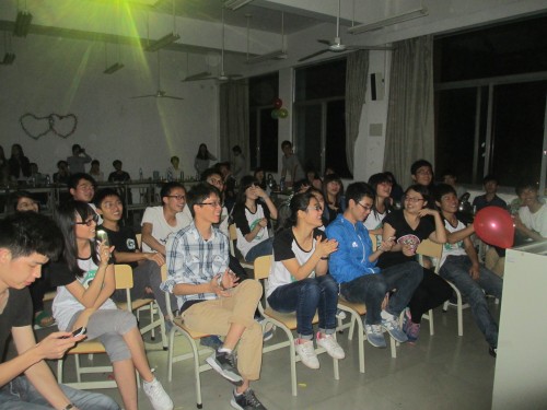然而,欢乐总是匆匆的,不知不觉联谊活动就接近了尾声,但大家仍格外地兴奋,台上的麦克风不知又被谁抢了过去,唱了起来,“后来”、“三人游”、“明天你要嫁给我”、“如果那天没有遇见你”…歌声不断地在课室里响起,不知是谁熄了灯,台下的茶茶们、亭宝们用手机电筒为台上的演唱者亮起了温暖的灯,大家一边唱着、玩着、也感动着…