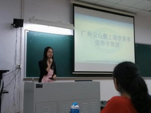 大会伊始,云山勤工董事张舟宇向大家介绍了语培2008年成立的历史与高达600~700人/年的招生盛况,指出语培是一个充满人情味的地方,从学员到教员,从员工到领导层都是我校的学生,这大大的拉近了大家的距离。她还表达了她对学员们提升能力、广交朋友的期望。