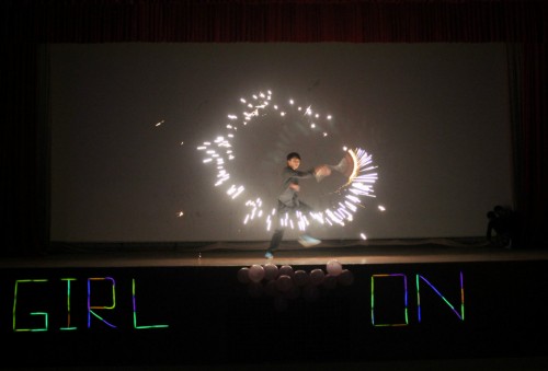舞会于19:40开始,精心准备的快闪拉开了舞会的序幕。在舞蹈快结束时,舞者手持玫瑰花祝在场的女生节日快乐,并将玫瑰赠与在场女生,让观众们大感惊喜。众所周知,大多数女生都喜欢烟火,在接下来的双节棍协会的表演中,表演者手持烟火配合双节棍表演,新奇的表演形式让台下观众连声叫好。