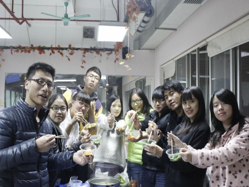 本网讯2013年12月27日,云山健身室&女生之家(南,以下简称“云健”)新老员工60人齐聚学生活动中心一楼女生之家,以“团圆火锅宴”的形式一起庆祝即将到来的2014年。