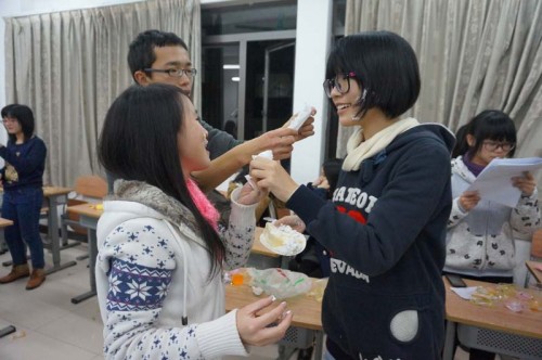 游戏结束后,两位经理为本月的优秀主管与优秀员工颁发奖状。然后,大家为两位员工过生日,他们唱生日歌,分享蛋糕,也分享着快乐以及寒冬里彼此拥抱的温暖。