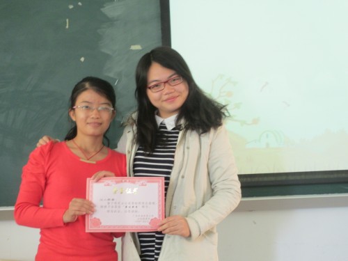 副经理陈晓文为最佳新秀郑璇玲颁奖