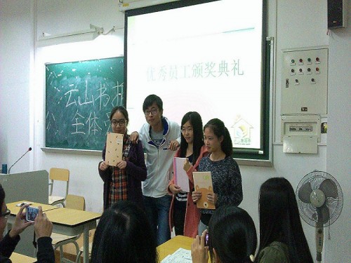 本网讯2013年12月8日晚,云山书报亭(南,下简称“书报亭”)召开了2013年上学期总结大会,会议由部门工作汇报、报亭大事记、未来期望、优秀员工表彰、经验交流五大部分组成。