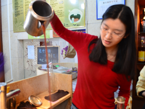 从早上11点起,就有离退员工陆续回到憩云轩。现任员工们忙碌的身影,让离退员工们回忆起了自己当年在憩云轩度过的美好时光。一位离退员工兴奋地走进吧台帮忙拉红茶,即使已经离退很久,拉茶的手艺却依然娴熟。随着浓浓的红茶香气慢慢扩散,憩云轩里的气氛也越来越热烈,大家愉快地交谈,回忆在憩云轩中的点点滴滴。