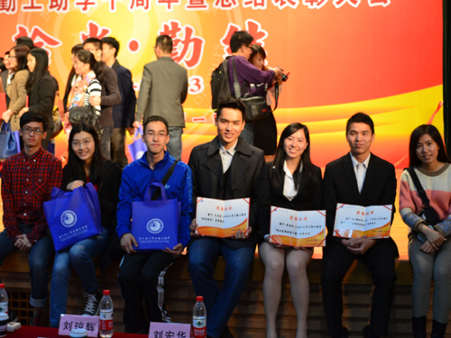 中午的新老员工聚餐结束后,大家就一齐前往参加“云山勤工十周年暨总结表彰大会”。在颁奖典礼上,憩云轩荣获了“创业实践优秀集体”的称号,憩云轩第一任经理吕洁成荣获了“云山学生勤工助学优秀校友”的称号,现任经理陈怡虹也被评为“创业实践优秀干部”。这些荣誉不仅属于他们,也属于整个憩云轩。