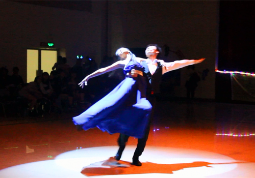 TGC舞队热情迸发,为现场观众带来 “light up tonight”,瞬间hold住观众耳目,点燃他们的激情;经典的华尔兹教学,令全场气氛上升为优雅华丽;还有其自创新编的舞蹈教学——JUDYJUDY和BUNGBO,则更具活力,令舞池内的同学流连忘返、乐不思蜀;双节棍协会带来的《破晓》,使戴着灯饰的双节棍犹如火光在黑暗中四溅;在斗舞环节,同学们在舞池中央秀出自己的舞技,随着动感的音乐激情四射地热舞,引得观众的阵阵欢呼。