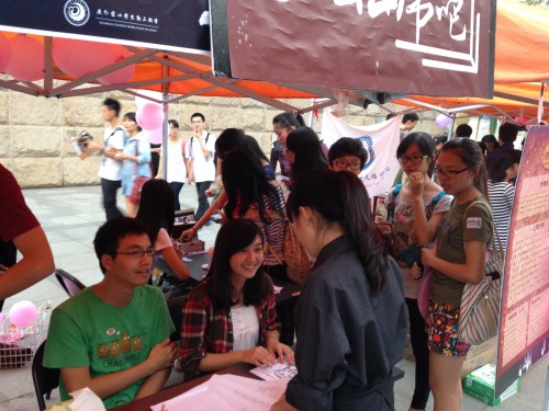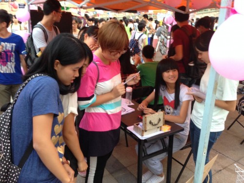 本网讯2013年10月31日下午,广外云山学生勤工助学(下简称“云山勤工”)在北校相思河畔及南校隧道口和创业园举行了盛大的云山勤工十周年游园会,其中,广外云山书吧(南,下简称“书吧”)以其独特的方式向云山勤工十周年献礼。