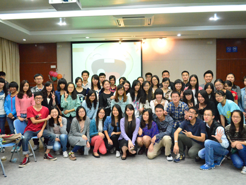 最后的环节就是“老人讲话”了。这次很难得的是几乎每一届的经理都来参加这次的周年庆活动。他们都很有感慨地说到自己在憩云轩的经历,流露出些许不舍的心情。另外,还给大家分享了许多学习与工作的经验,让大家获益匪浅。最必不可少的当然是切蛋糕还有大合照啦,小小的课室却洋溢着温馨的气氛。相信憩云轩会不断茁壮成长,越办越好的!