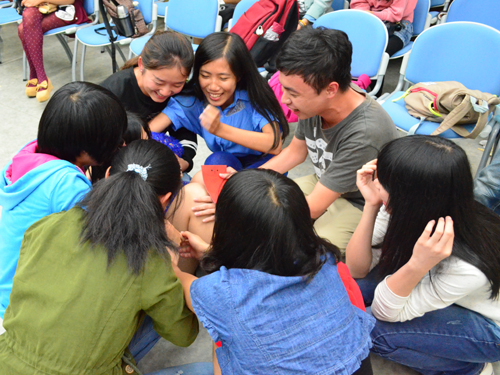 接下来,轮到财务部员工们可爱的舞蹈表演了,大二大三的前辈卖萌起来也不输给大一的小盆友哦。第二个游戏是快速问答,刁钻的问题把大家都吓得目瞪口呆。还有一个更刺激的游戏就是寻宝游戏了。大家要拿着信封里的线索在憩云轩和六教区域内寻找另一个信封,还没等主持人说完,大家就一溜烟地跑出去了,在走廊上随处可见奔跑着的身影。