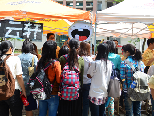 本网讯 “憩壮成长,一路有你,干了这杯憩云轩!”我们远远地就可以听见这个响亮的口号在校道上响起。10月18日中午和下午,云山憩云轩(北,以下简称“憩云轩”)的小伙伴们在校道上举办了两次摊宣,庆祝憩云轩成立三周年,吸引了众多学生的驻足围观和踊跃参与。