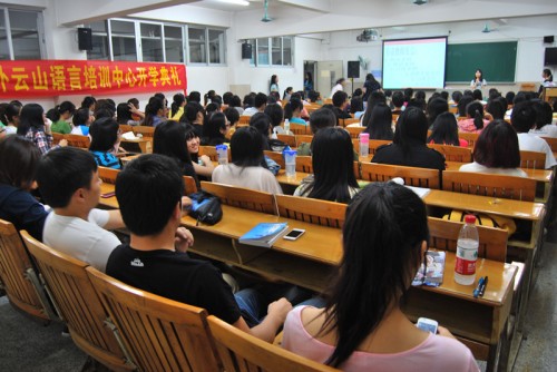 本网讯10月17日晚六点,广外云山语言学习与跨文化培训中心(北,下简称“语培”)在二教131举行开学典礼。开学典礼主要由语培承办,旨在向全体学员介绍语培的总体概况、中心理念、师资,让他们全面了解语培,从而更好地学习语言课程。当晚,语培中心各部门经理及全体学员出席了这次开学典礼。
