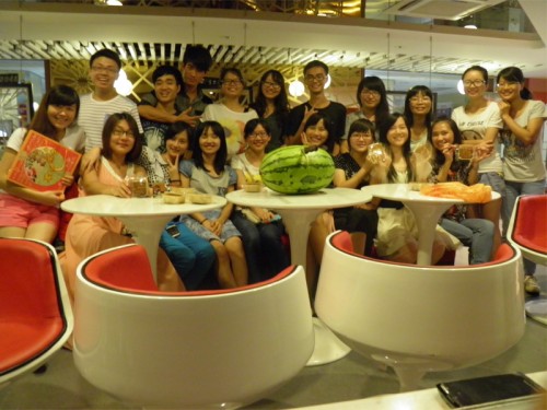 定向越野结束后,迎来了一场别开生面的生日会。生日会的寿星是优座内部三、四、五月份所有生日的员工。在接受大家的祝福和礼物之前,优座为寿星们准备了一些小考验。寿星们若不能回答出对应的问题,就要受到“重人”的惩罚。寿星们使出浑身解数回答问题,还是有几位没有“幸免于难”。他们要与几个“重”量级的员工完成一些高难度的动作。大家纷纷拿出相机拍照留念,还录制了视频,成为优座一份珍贵的回忆。游戏环节后,寿星们迎来了他们的大蛋糕。员工们发扬广外的特色,用英、中、日、泰等不同的语言为寿星唱生日歌。“优座的内部气氛真的很融洽,员工之间的情谊很深厚,玩游戏时大家都很放得开。唱生日歌的那一刻,我觉得好温暖。”印象经理陈曦在聚会结束后感慨道。随后,缤纷多样的美食铺满了一桌:月饼、绿豆沙、椰汁西米露、西瓜、饮料等。大家也顾不上矜持,毫不客气地“争食”起来。在美好月色下,优座内部一片欢腾。
