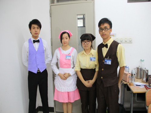 为了让新员工们更直观感受啡屋小站各员工上班情况,他们特别派老员工做起示范。啡屋的男、女服务员,着“小粉紫”(啡屋工作装男款),“小粉红”(啡屋工作装女款),佩戴领结或头巾,员工证,穿黑皮鞋;小站的男、女服务员,着黄色工服,佩戴领结或头巾,员工证,穿深色单鞋。此次培训大会秉着专业严谨的态度,所有新员工统一着正装参与。期间,当介绍到“礼仪”这一部分时,老员工们还亲自为新员工们纠正站姿,手势。虽然这些都是小细节,但为了提供更专业化的服务,大家都打起了十二分精神。其后,主持人通过ppt展示,向大家介绍了工作中的服务常识及技巧及各部门情况,图文并茂的讲解,使得在场新员工们频频点头。