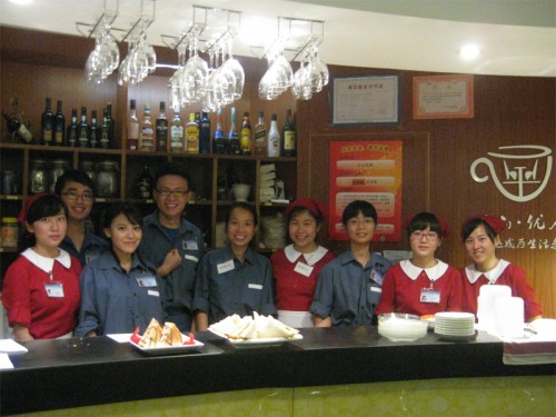 2013年9月15日上午,两位留学生准时到达优座,在优座前任经理何少如的简单介绍下迅速了解了优座营业的基本流程和基础工作。在进行简单试装后,开始了服务员和吧员的实习体验工作。