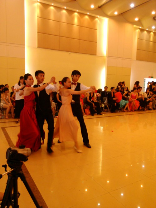 广外云山周末舞会(南,下简称“舞会”)派出了7支队伍参加男女组华尔兹比赛,5支队伍参加混合组探戈比赛,1支队伍参加女女组华尔兹比赛, 2支队伍参加狐步比赛。每个参赛队伍都精英荟萃,声势浩大。