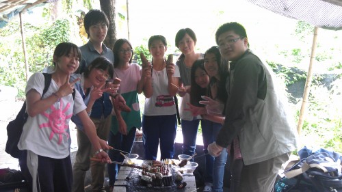 到达华南植物园后,亭仔们浩浩荡荡地前往植物园的烧烤场准备开始今天的第一个节目。烧烤的过程中,大家互相帮助,分工合作,有的人洗菜,有的烤肉,现场一片热闹忙碌。有人笑言:“感觉自己已经能够在北门创业卖烤羊肉了。”“不用怕啦,我来!”“我这里有得吃,你要不要?”“我烤的茄子,漂亮吗?”一片晴空之下,烧烤场涌现了各位“大厨”,亭仔们吃的不亦乐乎。烧烤环节接近尾声时,大家意外地发现了烧烤场周围有着各种长得很特别的虫子,于是又开始了一次研究行动,在一次次欢乐的大笑、惊喜的叫声中,大家的感情也在慢慢的拉进。