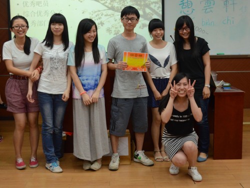 活动的后半部分,进行颁奖仪式。现场颁发了部门最佳员工奖、最佳部门等奖项,这不仅提高了士气,更让其他员工有了学习的榜样和目标。紧接着便是精心准备的视频展示阶段。视频中,各个时期的活动照片和平时的工作照片一一展现在面前,勾起了大家对以往的回忆。音乐萦绕的气氛下,小小的课室里洋溢着一种温馨的感觉。活动的末尾是老人们和现任经理发表讲话,还有送礼物给毕业老人。老人们除了说了自己的近况之外,还给大家分享了自己的学习和工作经验,让员工们都获益匪浅。而陈怡虹经理说的一句话更是令大家雀跃欢呼:“希望憩云轩的员工们,能像拉茶时冲出的茶柱一样,热腾而有力;像刚煮完的糖浆一样,温暖而甜蜜!